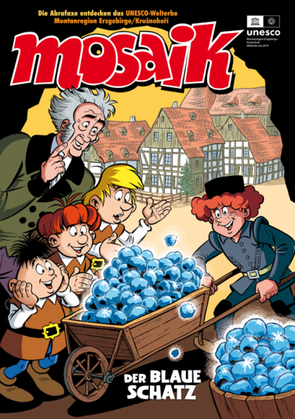 Mit dem neuen MOSAIK-Sonderheft „Die Abrafaxe in Schneeberg“ steht erstmals die Welterbe Montanregion Erzgebirge/Krušnohoří im Mittelpunkt einer Abrafaxe-Geschichte. Das Heft verbindet die Abenteuer der Protagonisten mit der Wissensvermittlung über die historische Region und eröffnet neue Zugänge zur Montan- und Bergbaugeschichte.
