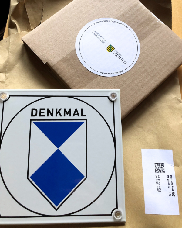 Um eine Denkmalplakette für das eigene Denkmal zu bekommen, wenden Sie sich in Sachsen direkt an das Landesamt für Denkmalpflege Sachsen. Voraussetzung ist: Es muss sich bei dem Objekt, um ein eingetragenes Denkmal handeln.