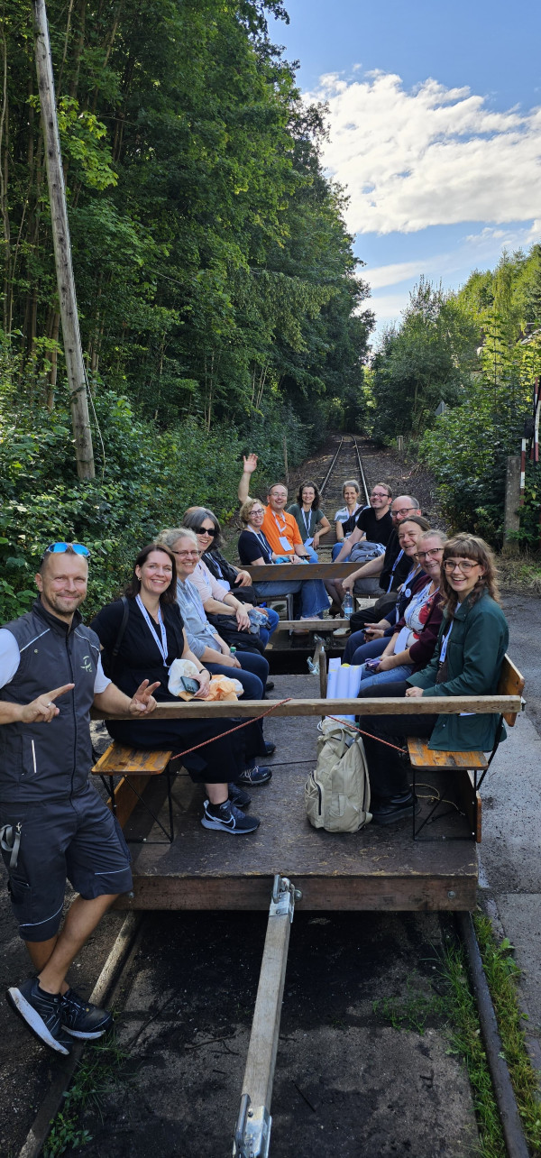 Am Nachmittag ging es hinaus ins Dorf: In drei Gruppen erkundeten wir Schloss, Spinnmühle, Papierfabrik und Bahnhof – mit einer Draisinenfahrt als besonderes Highlight.