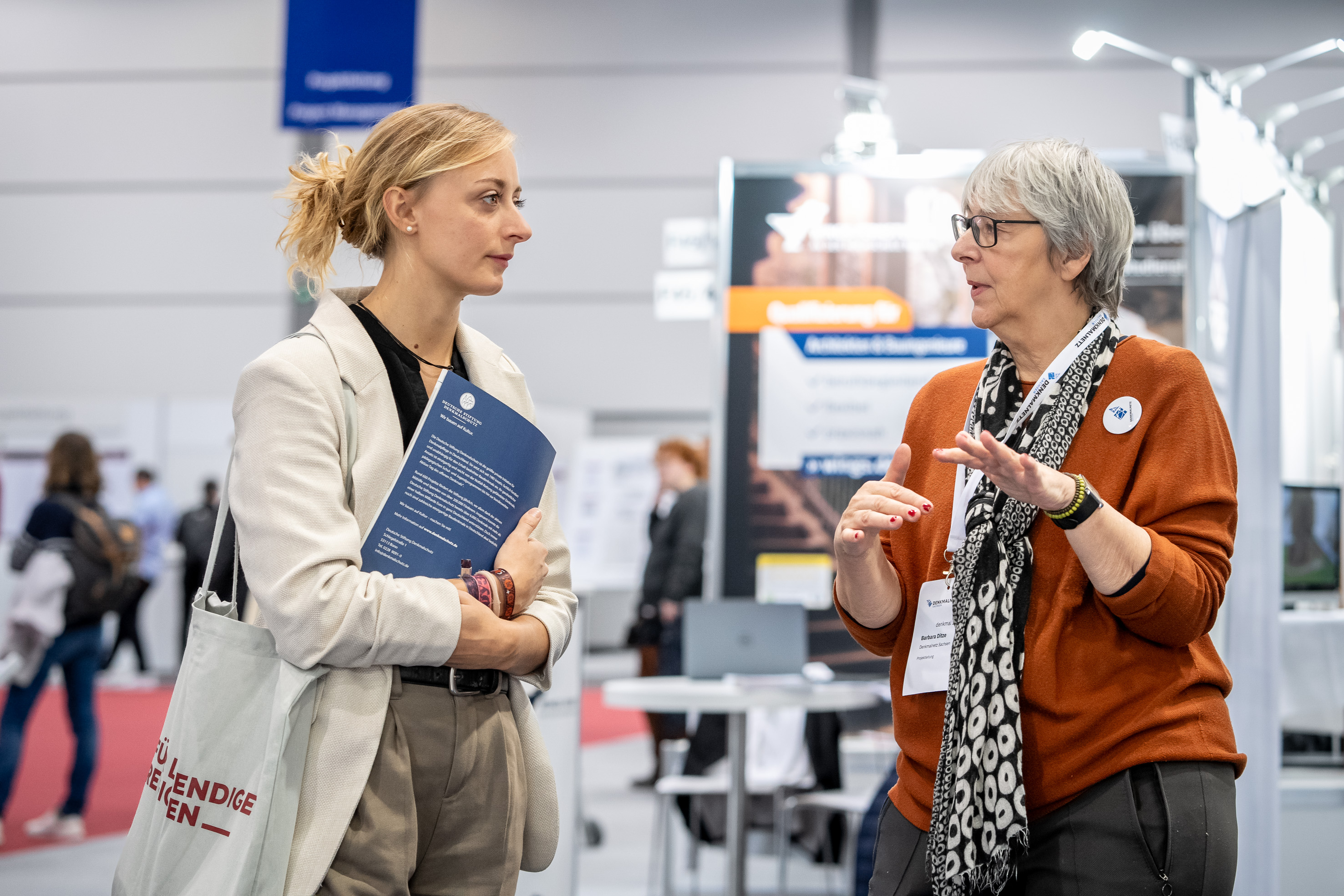 An Informationsständen stellen Ministerien Förderprogramme und Finanzierungsmöglichkeiten vor, zeigen gelungene Praxisbeispiele und bieten individuelle Beratung an.
